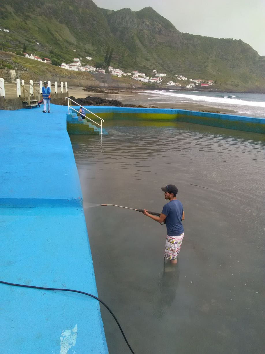 Estamos a fazer a nossa primeira limpeza da piscina natural de São Lourenço. Parece que não correu nada mal, apesar das condições do mar ...